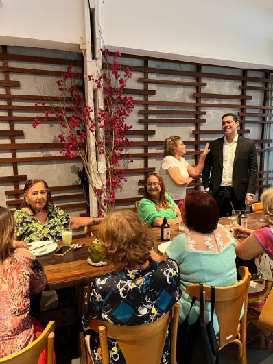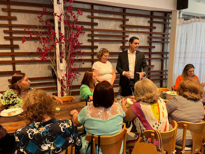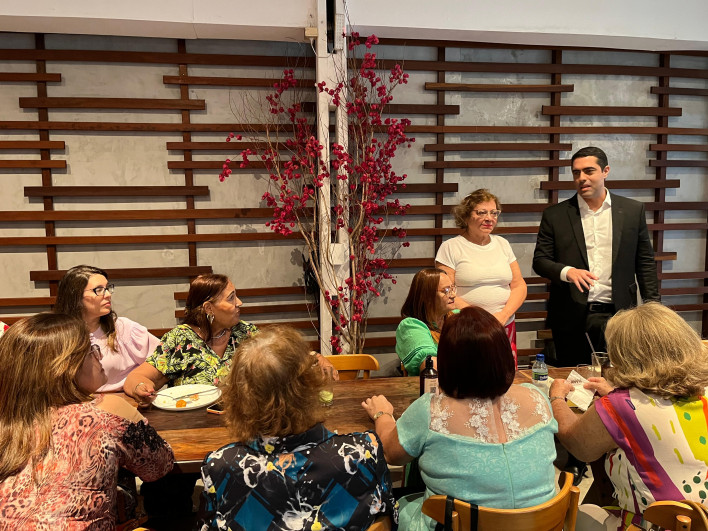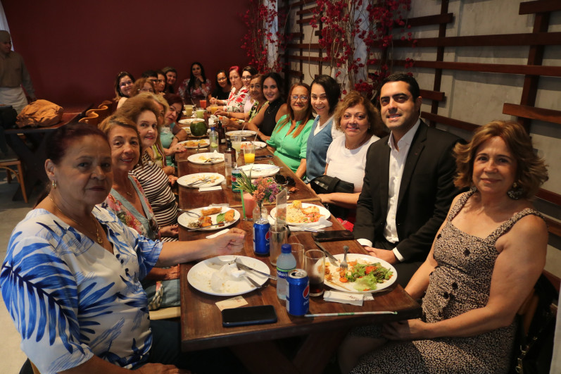 Almoço de confraternização da ABMCJ com a presença do presidente Leonardo de Moraes, tesoureiro Rapahel Martiniano e a secretária-geral Tássia Costa.