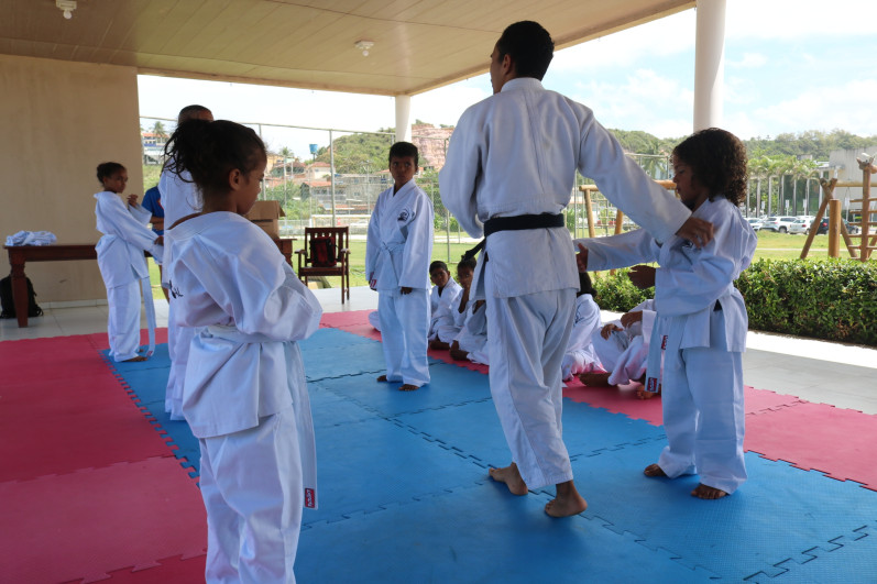 Entrega dos kimonos para os alunos do Judô do Projeto Samurai, turma organizada pela Caixa de Assistência dos Advogados de Alagoas em parceria com a OAB Alagoas.