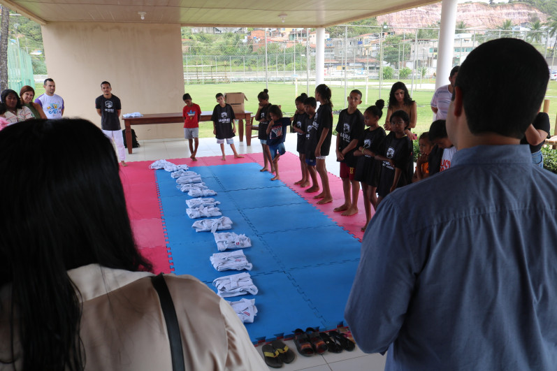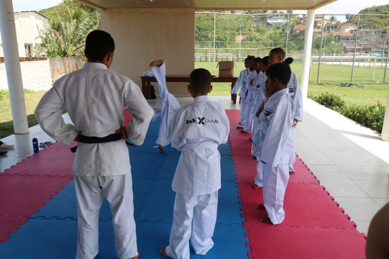 Entrega dos kimonos para os alunos do Judô do Projeto Samurai, turma organizada pela Caixa de Assistência dos Advogados de Alagoas em parceria com a OAB Alagoas.
